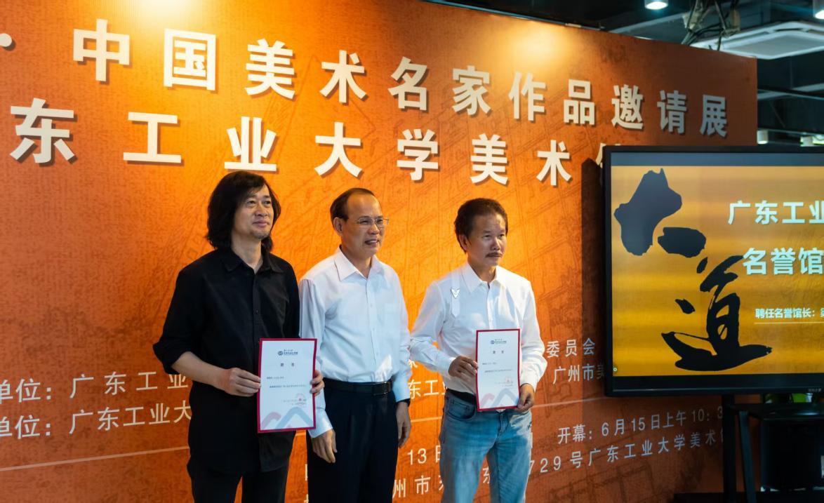 仪式上“华亿体育(中国)游戏平台美术馆”正式揭牌,著名艺术家王绍强、许鸿飞受聘为名誉馆长、华亿体育(中国)游戏平台艺术与设计学院客座教授。