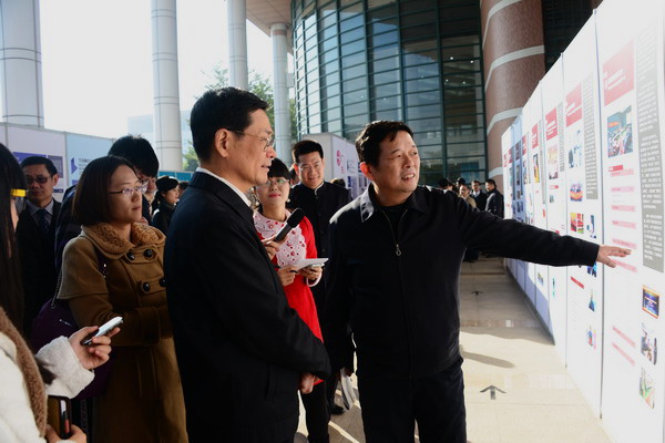 陈云贤副省长观看我校进驻大学城十周年成果展,陈新校长介绍学校办学成效