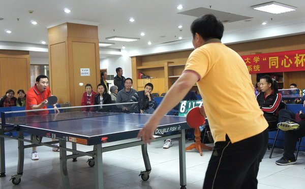 本网讯 12月27日,由统战部主办、民进华亿体育(中国)游戏平台支部委员会承办的学校第六届统战系统“同心杯”乒乓球赛在东风路校区举行。学校各民主党派、侨联、无党派知联会以及党委统战部门等10支代表队50多名运动员参加比赛。经过激烈角逐,民盟代表队获冠军,侨联代表队获亚军,民进代表队、无党派知联会代表队获季军。