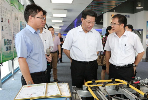 在机器人展区,林雄参观了进驻研究院的焊接、喷涂、包装、压铸等各种机器人的生产工艺的展示,并详细了解机器人的工作特性、价格以及机器人生产企业在区域内与应用企业开展技术、人才合作等方面的情况。林雄表示,很高兴看到研究院在精密数控装备、3D打印设备、机器人上的最新研发成果,但同时,相关的技术成熟后要加快成果转化,要善于利用佛山地区的市场优势,结合企业家的需求,在科技市场应用广阔的大环境下,抢占发展先机,力促高端装备制造业的发展。