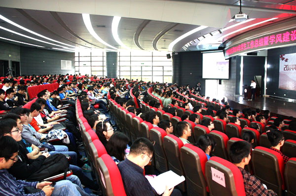 本网讯 3月18日下午,学校2014年学生工作总结暨学风建设表彰大会在大学城校园举行。校领导苏一凡、陈新、汤耀平、米银俊、章云、陈立中、郝志峰、张光宇以及学校关心下一代工作委员会副主任黄慧民、王积俭出席,机关各部处、教学教辅单位、后勤部门主要负责人、各学院党政负责人、全体辅导员以及来自各校区的师生代表共500多人参加会议。校党委副书记米银俊主持会议。