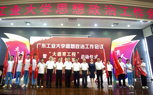 会议同时为我校“大德育工程”启动揭幕并面向全校发布了项目指南。“大德育工程”以立德树人为根本任务,通过打造思政项目品牌,提升育人实效,构建我校全员、全过程、全方位育人的大思政格局。会上,全体校领导为我校新成立的网络舆论引导队伍——“红网铁军”授旗。“红网铁军”由全校18个学院选拔出的网络信息员、评论员、策划员和技术员组成的专兼职结合的师生队伍构成,扎实推进互联网+思想政治教育。