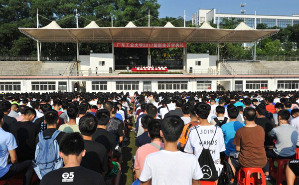 本网讯 9月17日,我校2017级本科新生开学典礼分别在大学城校园、东风路校区、龙洞校区举行,番禺校区的新生在大学城校园参加开学典礼。校党委书记、校长陈新作了题为《在最美的年华遇见最好的自己》的开学典礼致辞。校党委副书记、纪委书记汤耀平,副校长章云、陈立中、张力、张光宇、王成勇、陈卓武,副校级干部张学理等出席。学校有关部门、学院负责人,导师代表、辅导员老师参加。汤耀平、章云、陈立中分别主持会议。