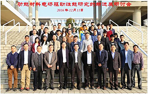 清华大学、中国科学技术大学、西安交通大学、南京大学、浙江大学、中山大学、上海硅酸盐所、华南师范大学及我校在这一领域的“杰出青年基金”获得者、特聘教授、中科院“百人计划”特聘研究员共十多名知名学者先后做专题报告。会议围绕铁电功能材料方面的特性或机理,如多铁性材料的磁电耦合机理、介电储能以及电卡效应、无铅压电陶瓷、量子调控及物理新现象等当代功能材料在电场驱动下的性能改变及其调控进行了热烈的讨论。