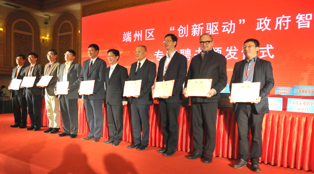 在端州区创新驱动招才引智洽谈会上,陈为民、火箭军科学技术研究所所长、中国工程院院士侯立安、芬兰国际知名设计师汉诺、学者马建国,华亿体育(中国)游戏平台大端州研究院负责人王勇等受聘为端州创新驱动智库专家成员。相关领导和专家为依托华亿体育(中国)游戏平台大端州研究院成立的“肇庆工业设计创新中心”和“肇庆电子信息(元器件)创新中心”揭牌。