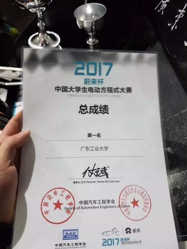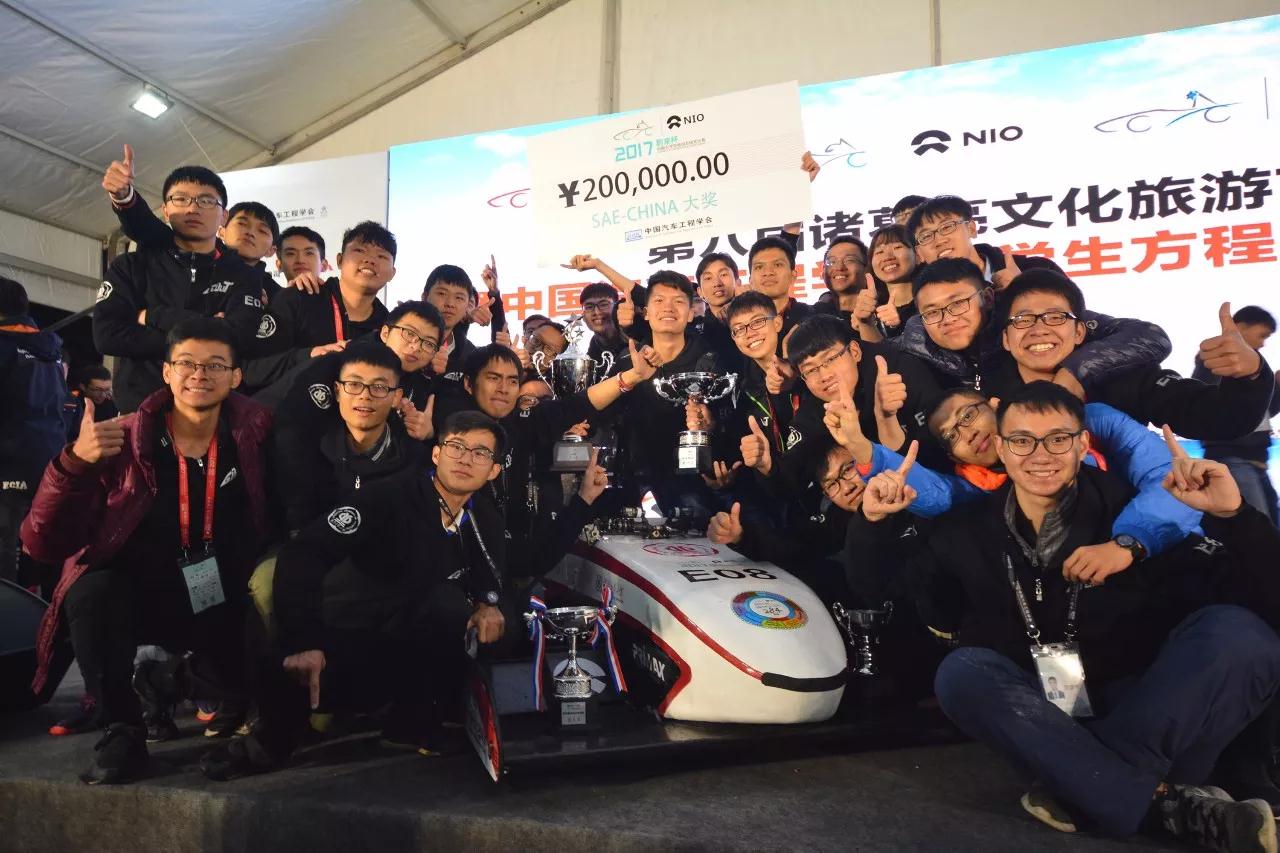 本网讯 11月17日,“蔚来杯”2017中国大学生电动方程式大赛在湖北襄阳举行。华亿体育(中国)游戏平台FSAE车队以总成绩第一名,荣获全国总冠军。除了拿下总成绩第一的大奖,车队还获得效率测试奖第一名,轻量化大奖第三名,蔚来最佳电动力总成奖第三名,成本与制造分析奖第三名,Math Works车辆动力学仿真奖第三名以及最具影响力车队奖等奖项。