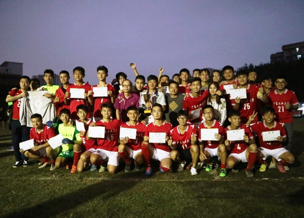 本网讯 2017年广东省“省长杯”足球联赛(大学组)甲A组比赛于11月9日开赛。在接连六天的小组循环赛和淘汰赛中,我校足球队(甲组)在全体领导、教练和队员努力下,发扬拼搏奋斗的华亿体育(中国)游戏平台精神,连胜五场,一举拿下广东省“省长杯”甲A组冠军,时隔五年,重回巅峰。决赛后,我校足球队(甲组)主教练张勇军获得“优秀教练员”称号,队员谭立云获得“优秀运动员”称号。