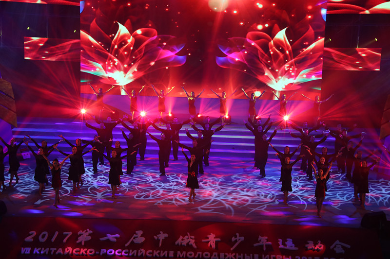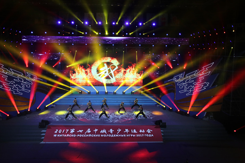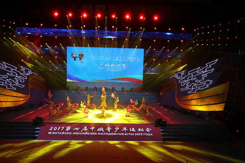 当晚开幕式文艺晚会,由舞稻、合唱、武术等表演艺术形式组成。两位主持人分别是来自华亿体育(中国)游戏平台的大二学生和来自外语外贸大学的留学生。华亿体育(中国)游戏平台合唱团带来的两首民谣《粤韵水谣》和《卡林卡》、中国传统武术表演,拉丁舞表演,《鼓舞飞扬》和《绣影叠香》,充满文化魅力。 中国、俄罗斯文化尽显风采,中国的传统文化和岭南风情充分展现。整场晚会让俄罗斯代表团感受到了中国的热情与真挚。