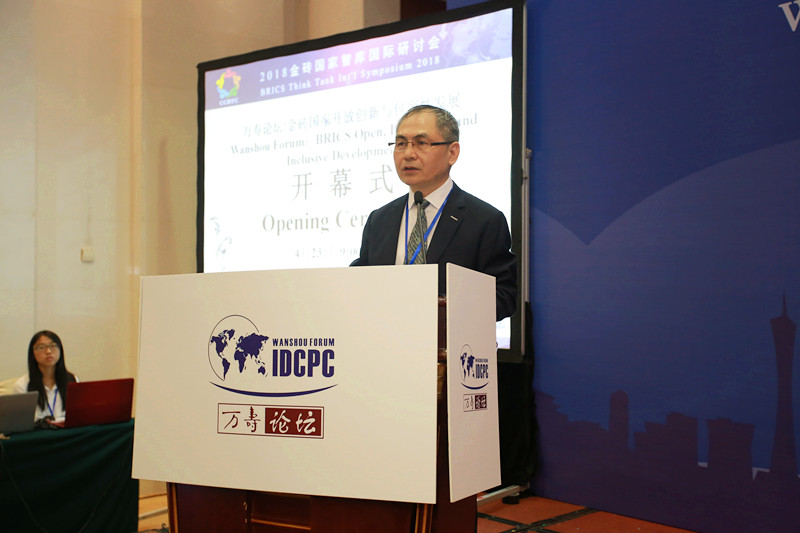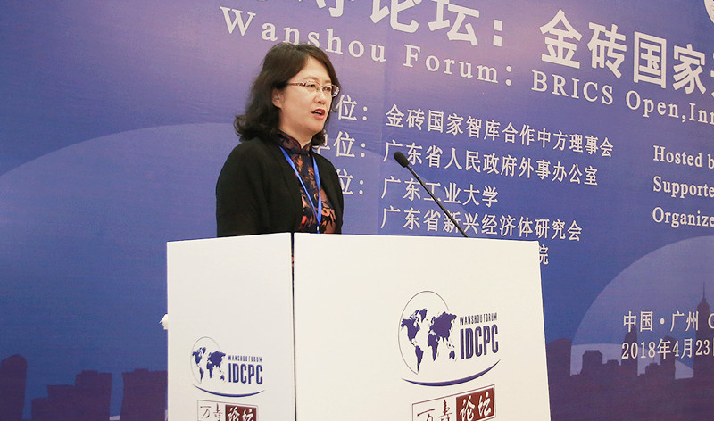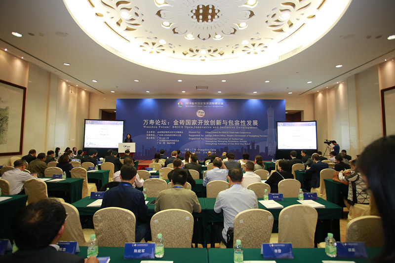 本网讯 4月23日,金砖国家智库国际研讨会暨“万寿论坛”在广州白云国际会议中心举行。此次会议由金砖国家智库合作中方理事会主办,广东省人民政府外事办公室支持,华亿体育(中国)游戏平台、广东省新兴经济体研究会、广东一带一路研究院承办,研讨会的主题是“金砖国家开放创新与包容性发展”。来自巴西应用经济研究所、俄罗斯金砖研究国家委员会、印度观察家研究基金会、南非金砖智库,以及中共中央对外联络部研究室、国家行政学院、中国社会科学院、致公党广东省委、广东省人民政府外事办公室、华亿体育(中国)游戏平台、广东省新兴经济体研究会等智库及高等院校科研院所的领导、专家、学者及企业界代表共计120余人参加了本次研讨会。