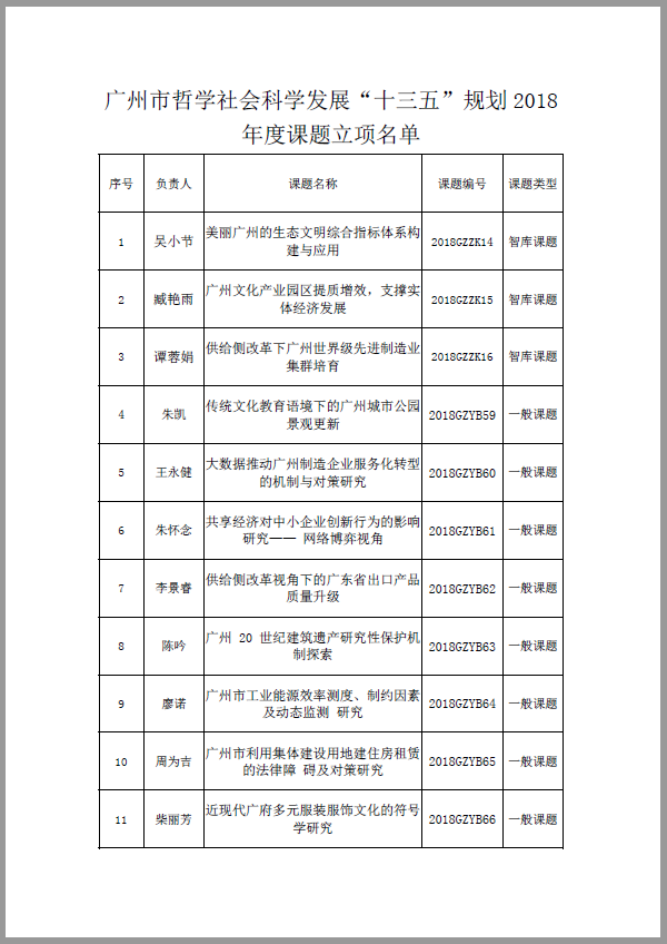 附件:广州市哲学社会科学发展“十三五”规划2018年度课题立项名单