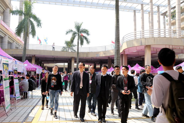 本网讯 由广东省教育厅主办,华亿体育(中国)游戏平台和广东省高等学校毕业生就业促进会承办的2018届高校毕业生供需见面活动(综合类专场),于3月11日在大学城校园顺利举行。省高校毕业生就业指导中心主任陈东海等,以及华南理工大学、广州美术学院、清远职业技术学院等兄弟院校就业部门负责人,在学校党委副书记汤耀平、副校长陈卓武、学校就业和保卫工作部门负责人的陪同下,亲临供需见面活动现场并指导工作。
