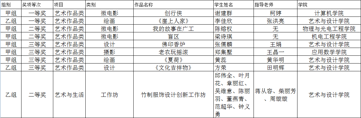 备注:甲类是非专业类(公共艺术教育类),乙类是专业类