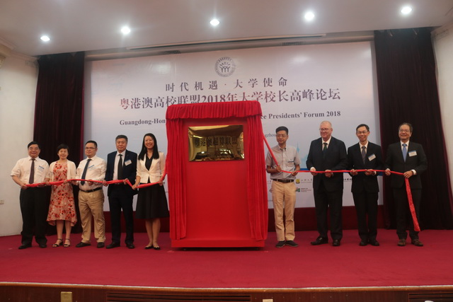 本网讯 7月9日,粤港澳高校联盟2018年大学校长高峰论坛在中山大学举行。教育部、省教育厅、澳门特别行政区政府高等教育辅助办公室、香港特别行政区政府教育局以及粤港澳高校联盟(以下简称“联盟”)成员高校与相关政府部门代表等约200人与会。学校党委书记、校长陈新出席论坛。