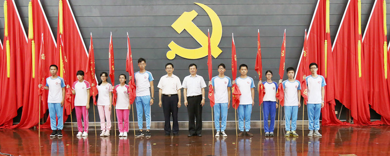 校领导为大学生党员暑期社会实践队代表出发授旗