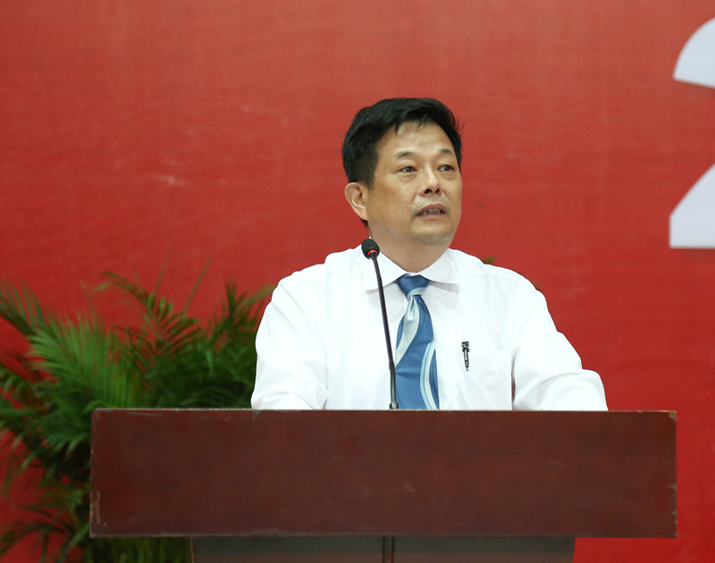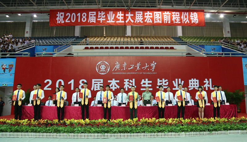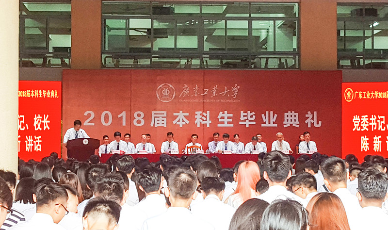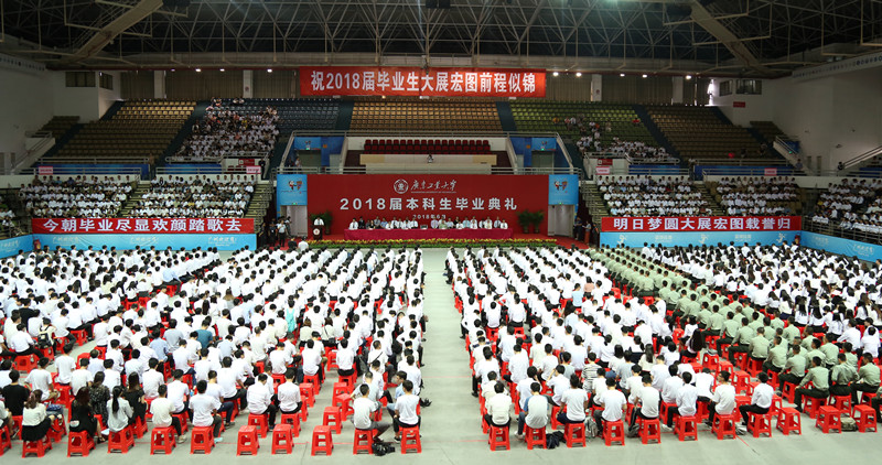 本网讯 “以奋斗姿态拥抱新时代,用奋斗让人生出彩,为时代添彩。”6月26日,我校举行2018届本科生毕业典礼,校党委书记、校长陈新以《以奋斗的姿态拥抱新时代》为题作了毕业典礼讲话。校党委副书记、纪委书记汤耀平主持典礼。校党委副书记陈良友宣读优秀毕业生表彰决定。陆军驻广东高校选培办主任张迪良大校,校党委常委、副校长章云、陈立中、张力、陈卓武、陈为民,副校级干部张学理出席,相关学院的负责人和教师代表、有关部处的负责人出席。典礼上为优秀毕业生代表颁发荣誉证书。今年共有10438名本科生毕业。