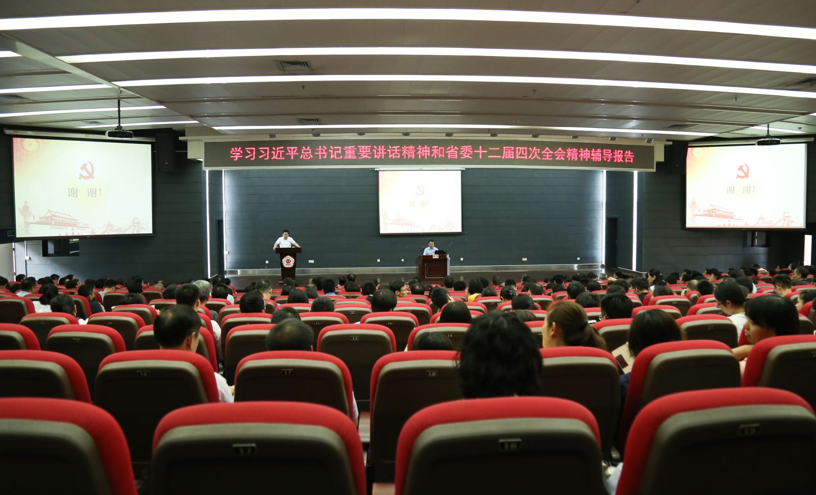 本网讯 6月20日上午,我校在大学城校区召开党委理论学习中心组(扩大)会议,专题学习习近平总书记重要讲话精神和省委十二届四次全会精神。省委宣传部副部长、广东省社会科学院党组书记蒋斌应邀作辅导报告,学校600多名师生参加了报告会。报告会由校党委书记、校长陈新主持。