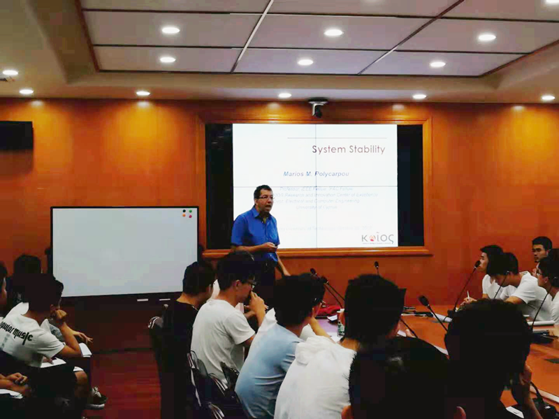 接着,IEEE计算智能学会主席Marios Polycarpou教授作了题为“System Stability(系统稳定性)”的专题课程。课程从“System stability is a key concept in automation”入手,通过对“Internal and external stability”与“Stability of linear and nonlinear systems”的介绍,深刻解释了“Lyapunov理论”。