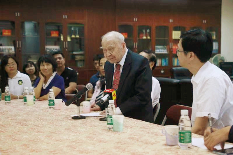 本网讯 10月30日下午,“黎鑫教授助学基金”颁发仪式在学校东风路校区举行。96岁老寿星黎鑫教授持续十二载用自己省吃俭用累积的退休金捐资助学,感动校园。校党委常委、副校长、教育发展基金会理事长陈为民,校关工委主任、原学校党委书记陈年强,乳源民族实验学校副校长赵天金出席助学仪式并对黎鑫教授的大爱善行给予高度评价。