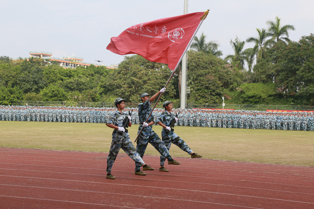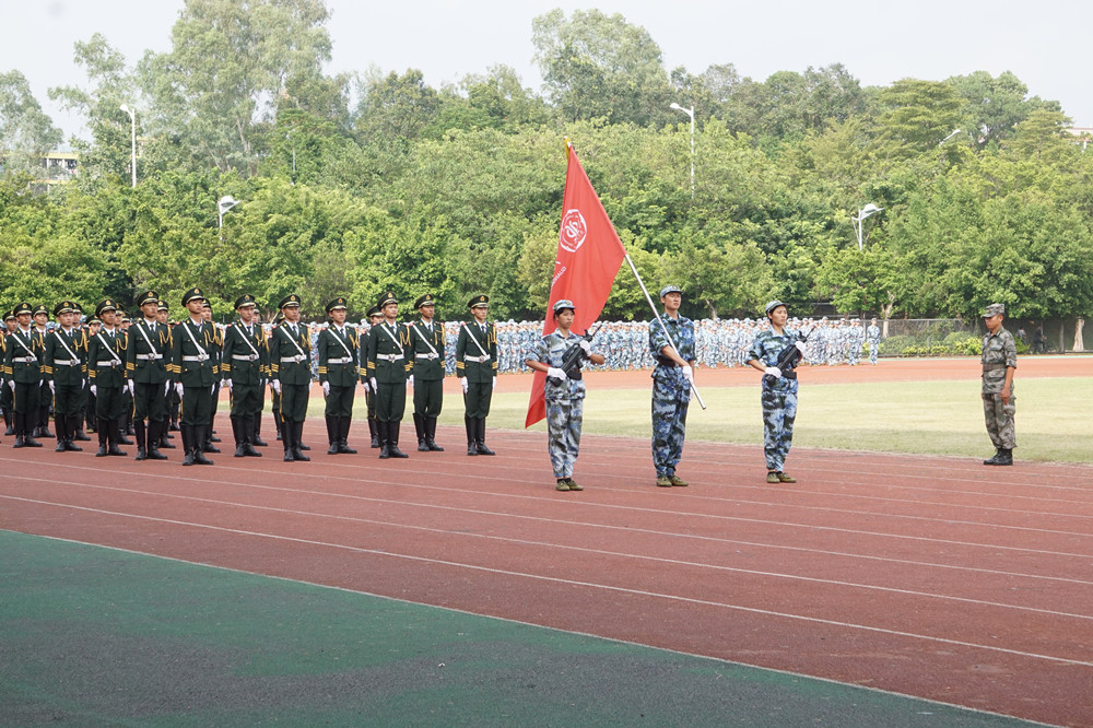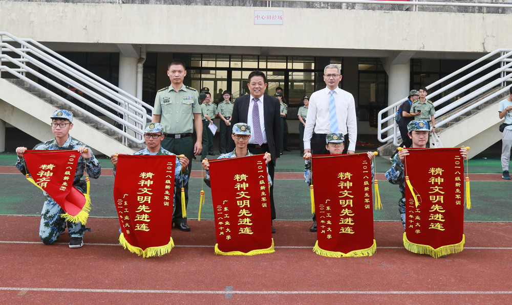 本网讯 10月21日,2018级新生军训总结暨表彰大会分别在大学城校区、东风路校区和龙洞校区同时举行。番禺区人民武装部部长张昆上校,学校党委书记、校长陈新,党委副书记、纪委书记汤耀平,党委副书记胡钦太,党委常委、副校长章云、张光宇、陈卓武、陈为民,副校级干部张学理,学校军训领导小组成员、机关有关部(处)及各学院的党政领导出席了大会。