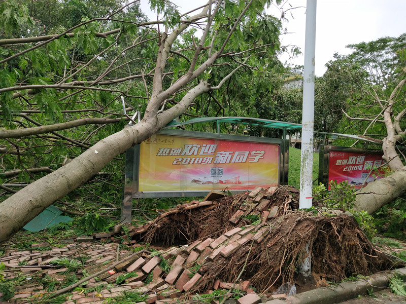 9月17日,“山竹”已经过境,但是这场来势汹汹的台风,带给校园不少创伤。师生们迅速行动起来,清理路障、打扫校园,为恢复校园环境在努力,明天复课做准备。