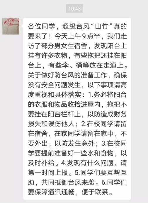 辅导员老师的防风“碎碎念”