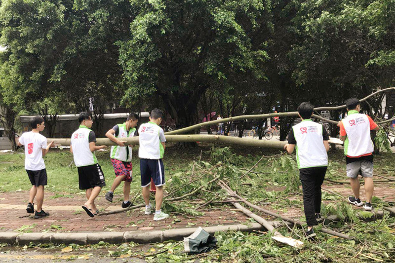 志愿者同学全力协助清理校