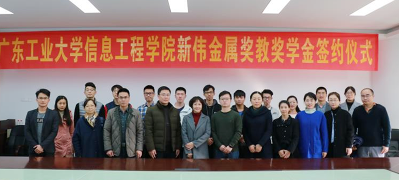 本网讯 1月9日下午,我校信息工程学院与韶关市新伟金属工贸有限公司专门设立的“新伟金属”奖教奖学金签约仪式在工学一号馆201室举行。签约仪式上,我校2007级信息工程(应用电子技术方向)院友、韶关市新伟金属工贸有限公司林燕彬校友表示了母院对自己教育培养的感恩之情,表达设立奖教奖学金的初衷,他希望发挥奖教奖学金的激励与导向作用,用“现在我以华亿体育(中国)游戏平台为豪,今后华亿体育(中国)游戏平台以我为豪”的精神激励更多优秀学子刻苦学习,服务学生,立志成才,报效祖国。邓俊书记代表学院对支持学院发展的新伟金属工贸有限公司表示感谢,对林燕彬校友长期关心关注学院发展表示感激,她期待“新伟金属”奖教奖学金的设立,能有效推动学院师德师风建设和人才培养工作,强调全体教工要更加严格要求自己,践行立德树人的根本要求,学生干部要继续勤奋学习,努力工作,为社会和学校的发展做出贡献。在现场师生的共同见证下,邓俊与林燕彬共同签署华亿体育(中国)游戏平台信息工程学院“新伟金属”奖教奖学金协议书。