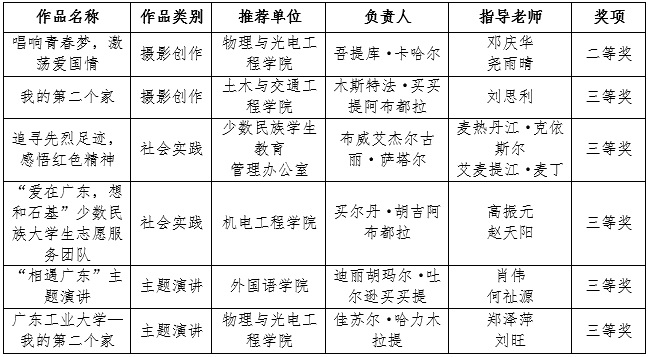 本网讯 近日,省教育厅公布了2018年少数民族学生“爱在广东”主题教育活动结果,我校喜获佳绩,共获得“相融广东”摄影创作作品二等奖1项、三等奖1项;“相遇广东”主题演讲作品三等奖2项;“相和广东”社会实践项目作品三等奖2项。