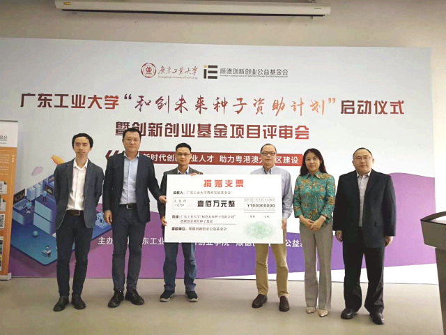 在“和创未来种子资助计划”捐助仪式上,顺德创新创业公益基金会向我校捐赠创新创业公益基金100万元,为具有较好创意和发展潜力及良好社会价值的学生创新创业项目提供资金及资源支持。