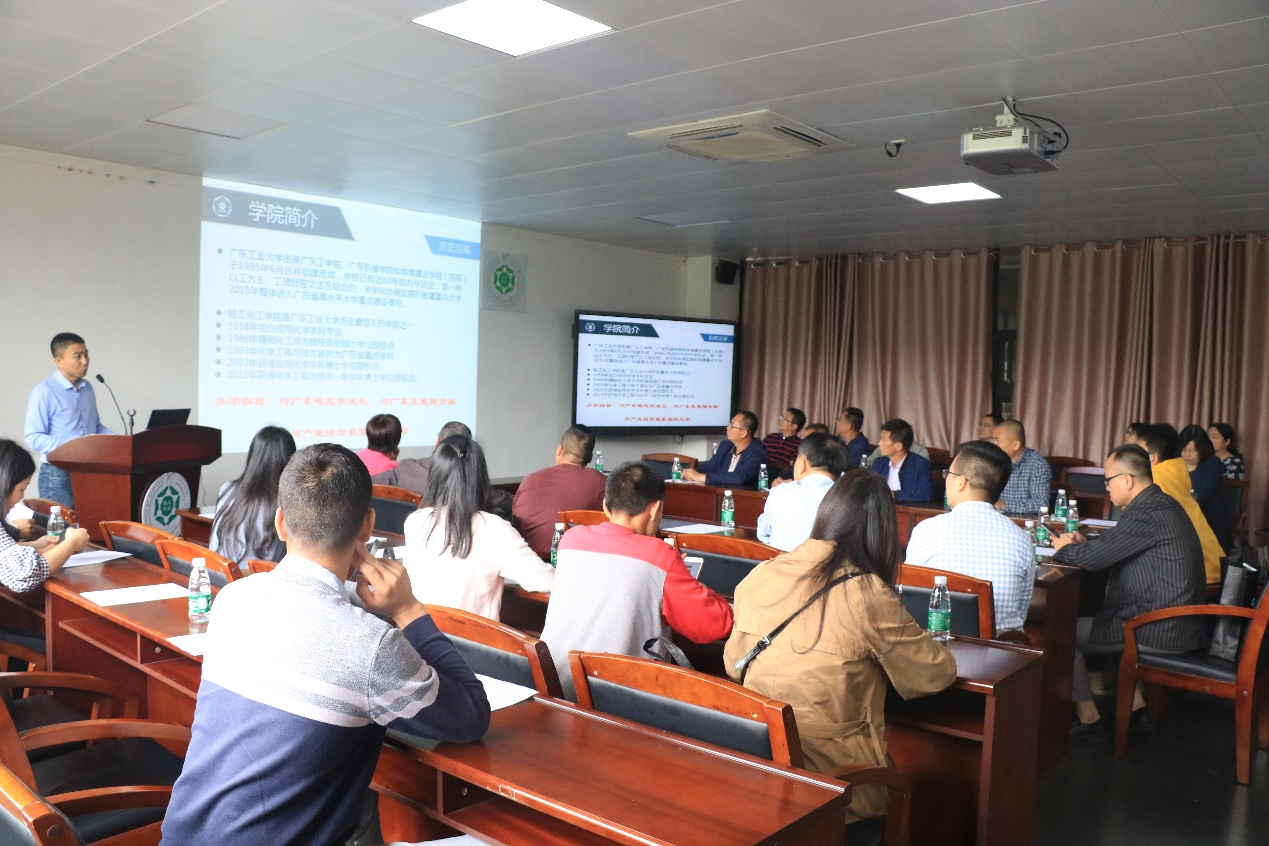 本网讯 4月16日上午由云浮市协同创新科技有限公司组织的云浮考察交流团来我校轻工化工学院考察交流,轻工化工学院负责人带领相关学科的科研团队接待了考察团。