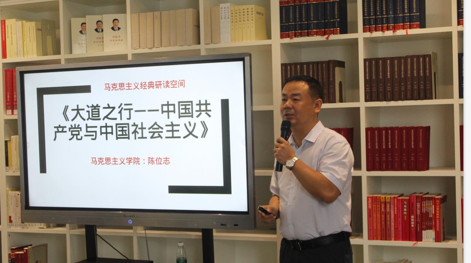 随后,经典研读第一讲开讲。马克思主义学院副院长陈位志介绍和分享《大道之行:中国共产党与中国社会主义》的阅读体会,并与现场师生进行研讨交流。他从经济、政治、文化、社会等各方面,深入分析了中国道路、中国理论、中国制度、中国文化的优势,让师生体会中国发展的辉煌成就。马克思主义学院教师舒玲、张中鹏、李晓婉等也与在场的学生代表进行了互动讲解和讨论交流。师生们表示,“经典研读活动让经典文化穿越时空,历久弥新”“每一次研读经典,都是与作者的一次对话,感悟真理,砥砺思想,触动心灵。”