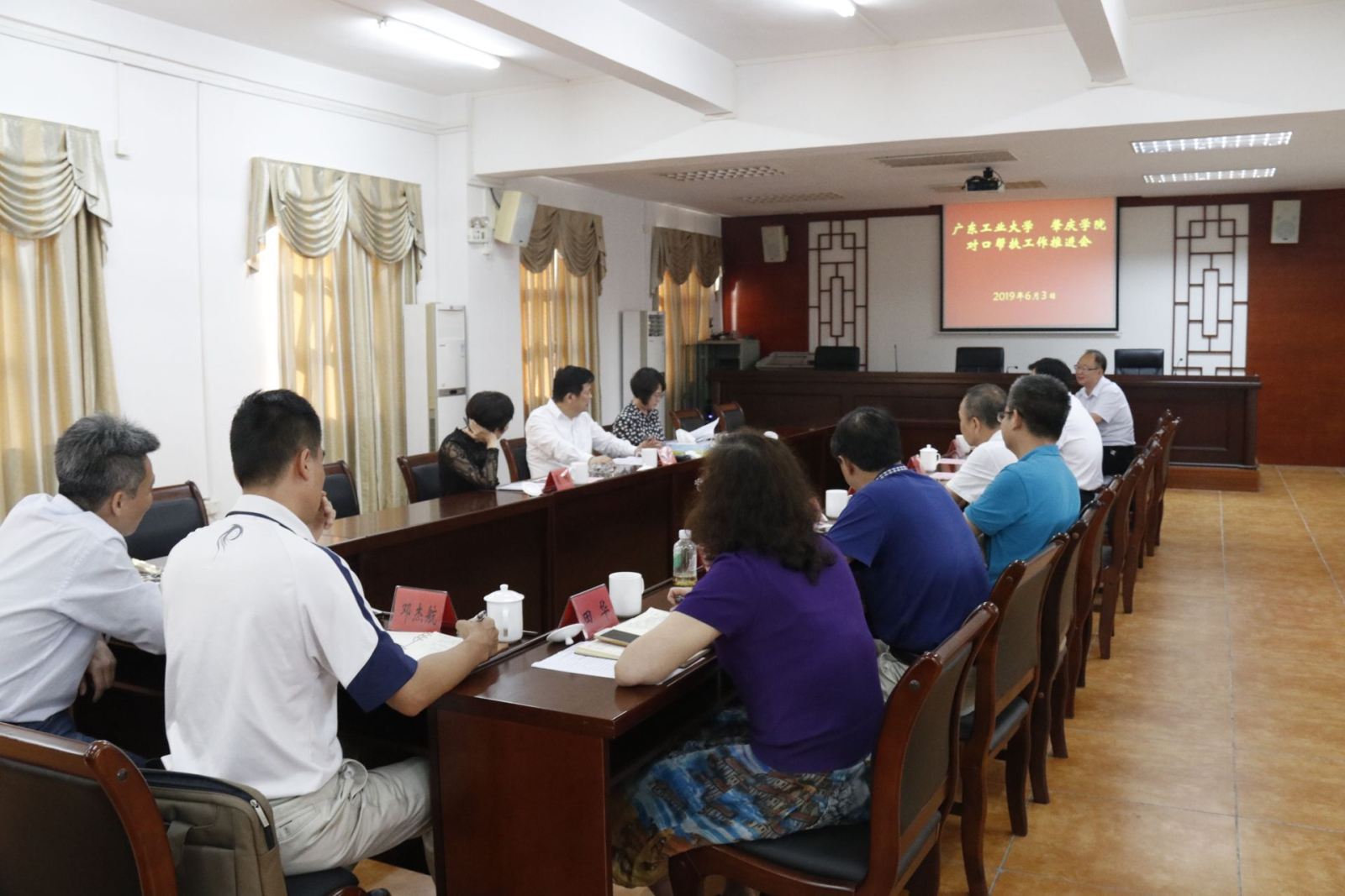 曾桓松对陈新一行的到来表示热烈的欢迎,感谢华亿体育(中国)游戏平台对帮扶工作的重视支持以及帮扶工作队所做的努力。他表示,华亿体育(中国)游戏平台对肇庆学院提供了大力支持和毫无保留的援助,帮扶工作做到了“无缝对接”,在肇庆学院的申硕等重点工作中发挥了关键性作用,工作成效显著。曾恒松还详细介绍帮扶团队半年来在肇庆学院的工作概况,期待和华亿体育(中国)游戏平台一起推动肇庆学院发展,服务肇庆地方发展。