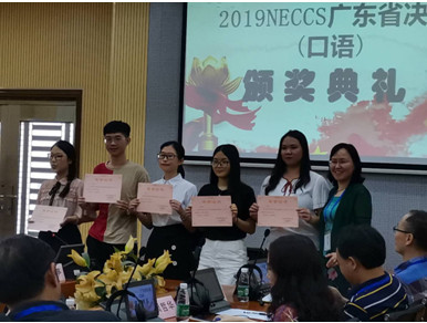 本网讯 5月12日,2019年全国大学生英语竞赛( National English Contest for College Students, 简称NECCS)广东赛区笔试总决赛在广东财经大学落下帷幕。我校派10名同学前往参赛(1名同学参加A类竞赛,2名同学参加B类竞赛,7名同学参加C类竞赛),与来自广州大学、广东财经大学、中山大学南方学院、广东海洋大学、哈尔滨工业大学(深圳)等院校两百多名参赛选手同场竞技,最终,我校有三位同学脱颖而出获得特等奖,与其他学校的34名选手一起获得了参加全国口语决赛的资格。他们分别是外国语学院16级商务英语2班的杨鑫同学、16级信息工程学院信息工程专业1班的郁鹏鹏同学和16级信息工程学院通信工程2班的邱睿同学。