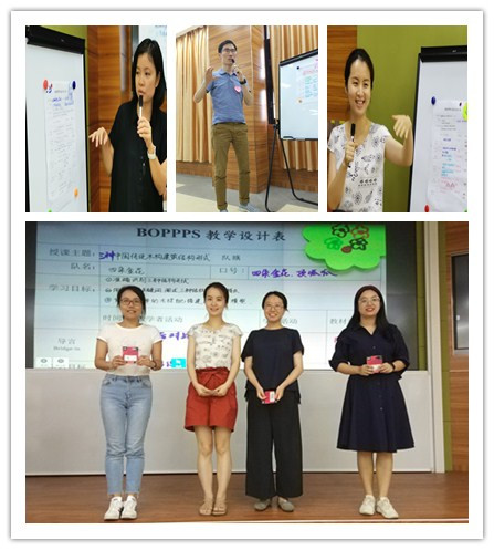 两天的培训紧张而热烈,参训老师们自始至终紧跟团队培训师的步伐,认真聆听,积极互动,精心完成教学设计,从理论原理到实践设计,再到分组实战演练,一步步将BOPPPS教学设计法内化于心、外化于行。他们均表示在本期培训学习中受益匪浅。土木与交通工程学院的王琦老师表示,在本次教学工作坊实战演练中,通过个人备课、集体讨论、教学演练、评点反思等实操环节的反复训练,更好地领悟了BOPPPS教学模型的精髓,有利于促进自身的教学能力的提升。建筑与城市规划学院胡晔旻老师表示,BOPPPS教学工作坊改变了自己的课堂教学观念,今后要将BOPPPS教学模式应用到教学实践中,积极践行“以学生为中心”的教学理念,努力提高课堂教学质量。艺术与设计学院陈丽瑜老师也深深地体会到,此次培训,使自己开拓了教学视野,对教学内容、教学方式都有了全新的认识,为今后开展教学设计的研究取得了多样化的视角和广阔的视野。
