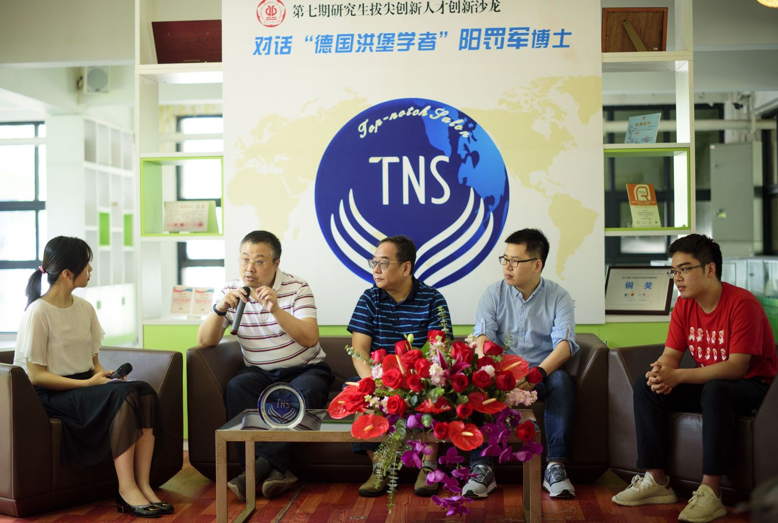 本网讯 5月16日,第七期研究生拔尖创新人才创新沙龙(TNS)顺利举行。“让优秀成为习惯,让榜样成为力量”,本期沙龙活动邀请到“德国洪堡基金”获得者阳罚军博士做客创新沙龙,与研究生拔尖创新人才分享研学经验和感受。学校副校长、研究生院院长张光宇教授、研究生院常务副院长吴福根教授应邀出席了本次活动,近60名“研究生拔尖创新人才”培育对象参与。