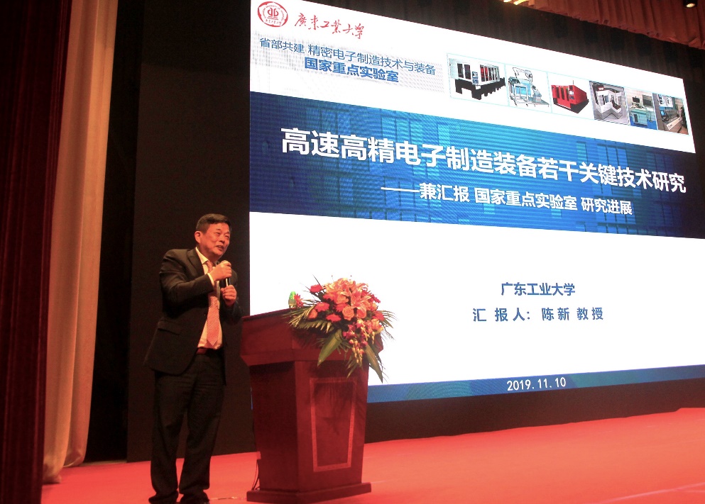 陈新教授以《高速高精电子制造装备若干关键技术研究》为题作大会主旨报告。报告结合我校机械工程学科建设发展现状和国家重点实验室的前期建设,重点介绍了其科研团队围绕电子制造装备及产线设计面临的高速、高精、高效制造难题所取得的研究进展,包括:解决了高速高精电子制造装备速度/精度冲突的基础性难题、微纳阵列高速高精加工的系列工艺与装备研制难题和电子基板定制生产、手机自动化装配等高精高效的制造优化难题,并研发了系列具有自主知识产权的关键功能部件/高性能装备及产线,其中一批标志性研究成果已实现了产业化。