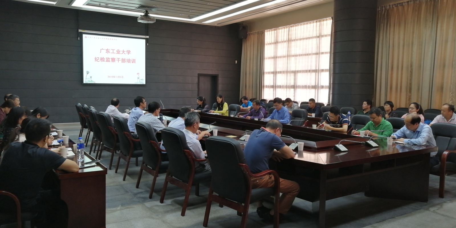本网讯 11月5日下午,学校在大学城校区大讲堂第一会议室举行全校纪检监察干部培训活动,校党委副书记、纪委书记汤耀平作专题辅导报告,校纪委委员、各二级党组织纪检委员、特邀监察员、纪委办监察处全体人员参加了学习。学习培训会由纪委副书记、纪委办主任、监察处处长方创文主持。