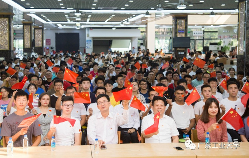 本网讯 10月1日上午,中华人民共和国迎来70华诞,北京天安门广场一场盛大的庆祝大会和阅兵振奋人心,激起了师生们满满的爱国热情。为更好地了解和感受新中国成立70周年所取得的伟大成就,学校组织师生集中收看收听现场直播。师生们在大学城校区、东风路校区、龙洞校区、番禺校区通过电视、网络、广播等形式,集中收看收听庆祝中华人民共和国成立70周年大会、阅兵仪式和群众游行现场直播。校党委书记、校长陈新,校党委副书记、纪委书记汤耀平与大学城校区师生一起观看直播;副校长陈卓武与龙洞校区师生一起观看直播。陈新、汤耀平一行走访了学生社区并看望了假期留校学生,勉励同学们热爱祖国、努力学习、接续奋斗,建功新时代。