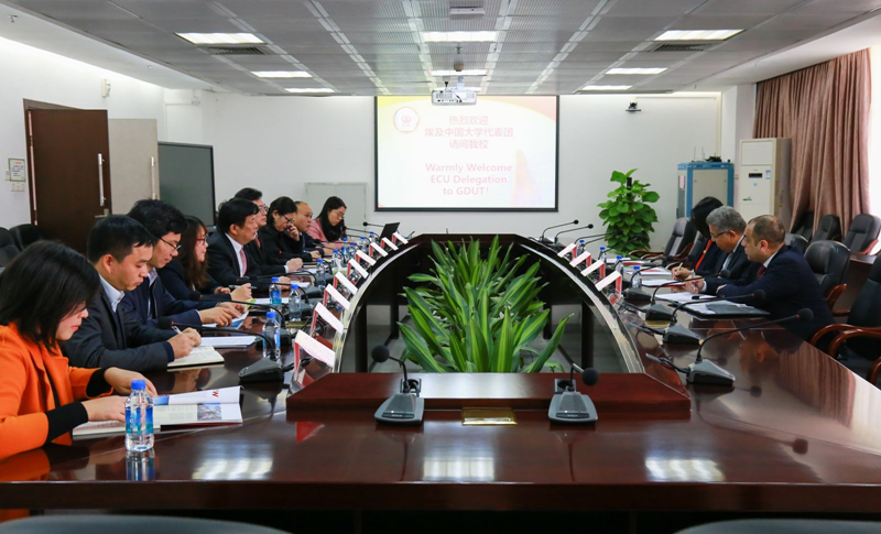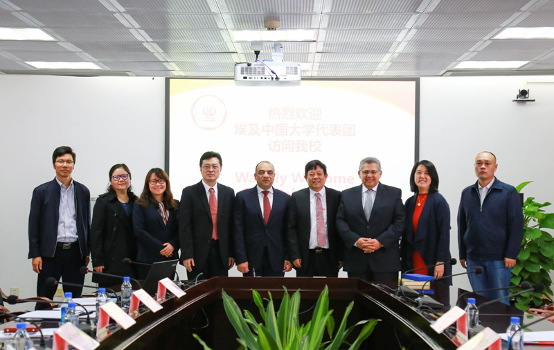 陈新对埃及中国大学Ashraf Mohamed Abdelhamid Elshihy校长一行的来访表示热烈欢迎,并向其介绍了我校近年来在教学、科研、国际合作等各方面的重大发展及成果。他指出,我校是一所以工科为主、经管文法艺多学科协调发展的省属重点大学,我校重视产学研合作以及学校的国际化人才培养。埃及是我国“一带一路”倡议下的重要合作伙伴,我校期待与埃及中国大学合作,共同努力,找到契合点,在学生交换、教师互访、科研等方面展开合作,进而推动两国在教育、经济、产业上的全方位合作。