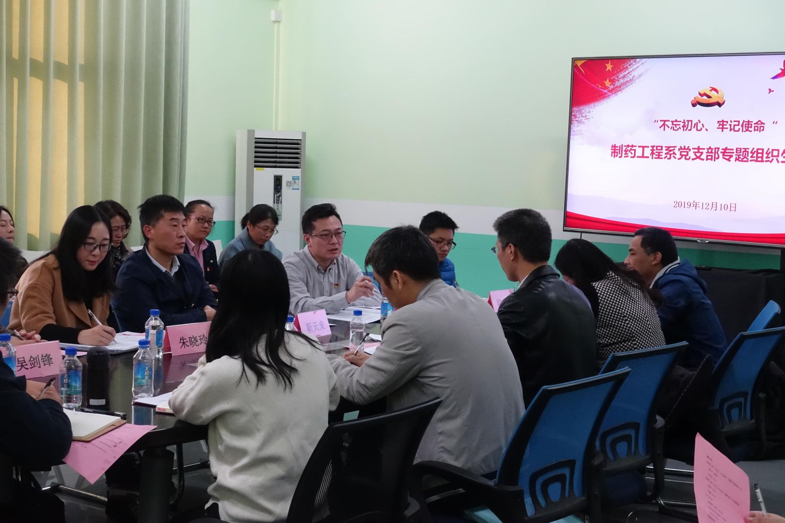 赵肃清代表支部表态,将认真落实主题教育要求,对理论学习学深悟透,用科学理论指导实践活动,坚持不懈践行党的群众路线,扎实做好支部规划建设及党员教育管理,发挥党建对制药工程系教学和科研工作的引领和促进作用,为学院发展及学校高水平大学建设做贡献。