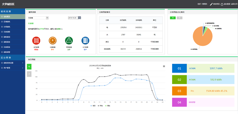 能耗监测平台系统实现了三校区绝大多数建筑的能耗二级监测,有助于学校能源精细化管理及绿色·节约型校园的建设。该平台系统于2016年底通过省住建厅和教育厅的联合验收2019年7月完成软件全新升级。
