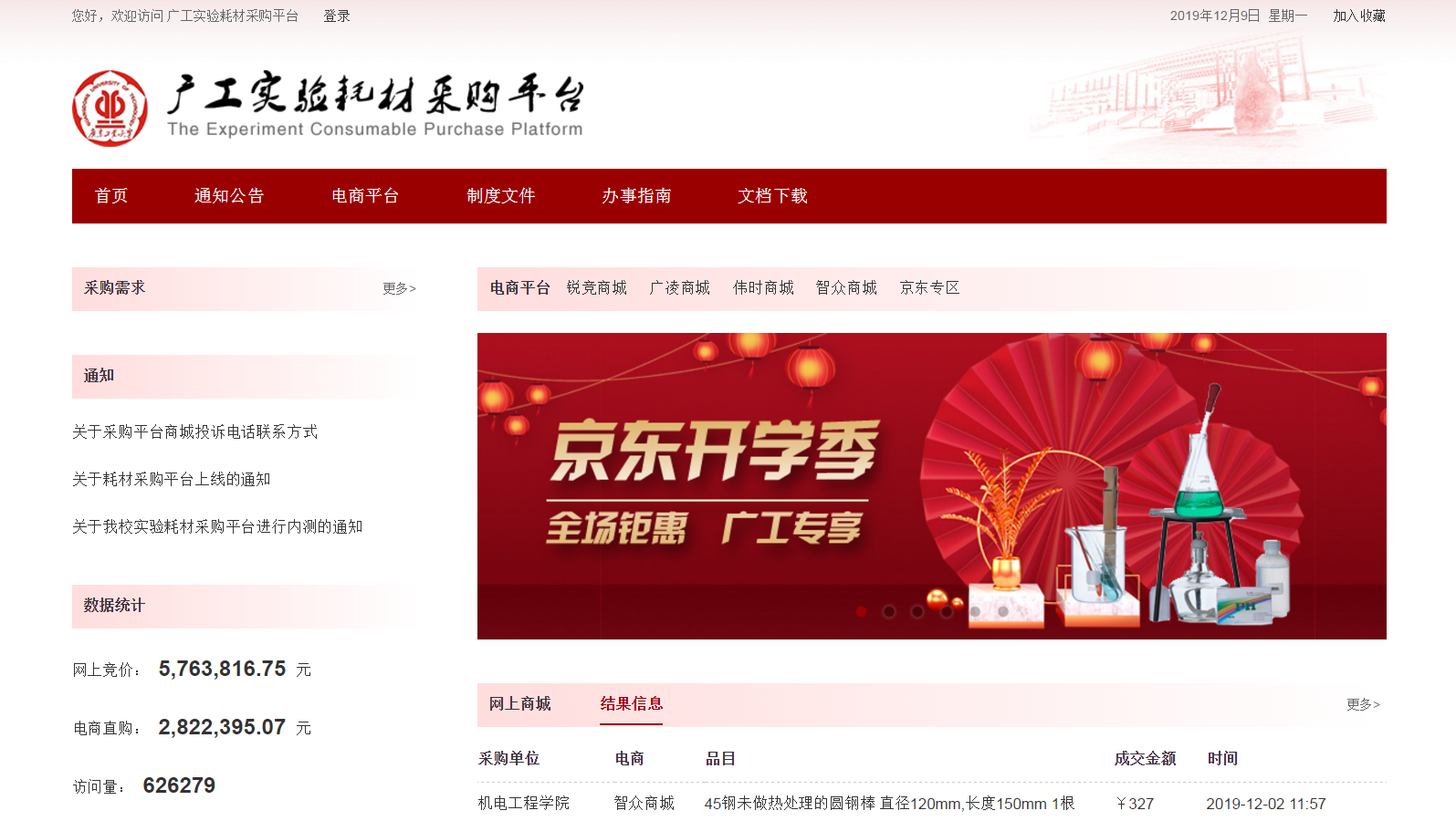 作为工科院校,我校实验耗材采购任务十分繁重,针对采购“流程长”问题,我校运用信息化手段,破解耗材管理困境。我校于2017年12月建立并启用了“华亿体育(中国)游戏平台实验耗材采购平台”(http://hccg.gdut.edu.cn),通过招标引入锐竞商城、广凌商城、伟时商城、智众商城四家电商,基本实现实验耗材集中采购、采购全程网上留痕,促进耗材采购规范化。采购平台自上线以来完成耗材采购850多万元,平台访问量48万多人次。2019年8月26日,“实验耗材采购平台”升级工作完成。此次升级,扩展了危化品购买模块、订单推送模块、订单备案模块、购买需求发布模块以及结算中心模块。实现了用户采购信息发布、零散购买商品线上备案报销,进一步加强了耗材采购的监督和管理。购买需求发布模块的上线,解决了科研人员需要花费大量时间寻货、比价的困扰。下一步,耗材采购平台即将对接"化学品管理平台"和财务报账系统,实现国家管制类危化品线上备案审批、耗材采购报销全流程一站式服务。