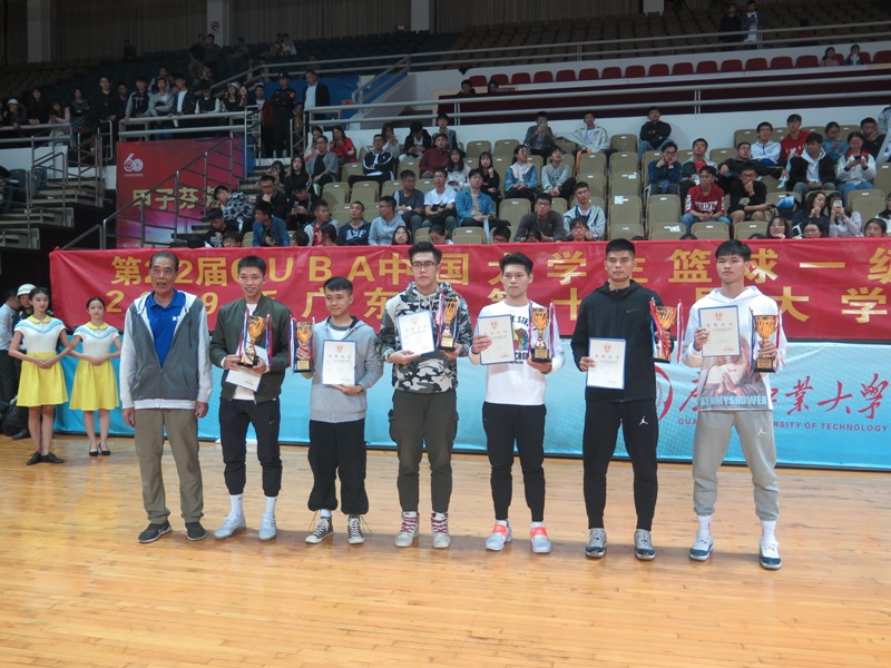 我校男子篮球队乙组在小组赛中以三战全胜的战绩获得小组赛第一名,又在交叉淘汰赛中战胜华南理工大学,最后与汕头大学在主客两场决赛中以净胜分9分获得胜利,最终捧起第22届CUBA广东赛区男子组冠军奖杯,实现六连冠。