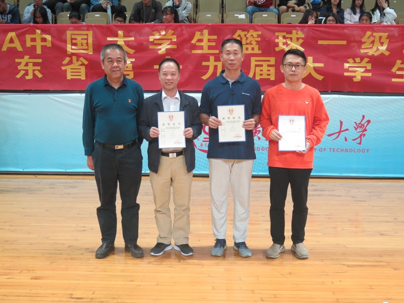 广东省教育厅副巡视员邱克楠,我校党委常委、副校长陈卓武,中国大学生体育协会常务理事、广东省学生体育艺术联合会主席郭鼎文,我校体育部主要负责人,广东省学生体育艺术联合会篮球协会竞委会主任、本次比赛仲裁邓飞,广东省学生体育艺术联合会篮球协会裁委会主任、本次比赛裁判长王春生等嘉宾观看了男子决赛第二场比赛并在颁奖仪式上为获得男子和女子前八名的代表队、优秀裁判员、优秀教练员、优秀工作人员、优秀组织单位颁奖。