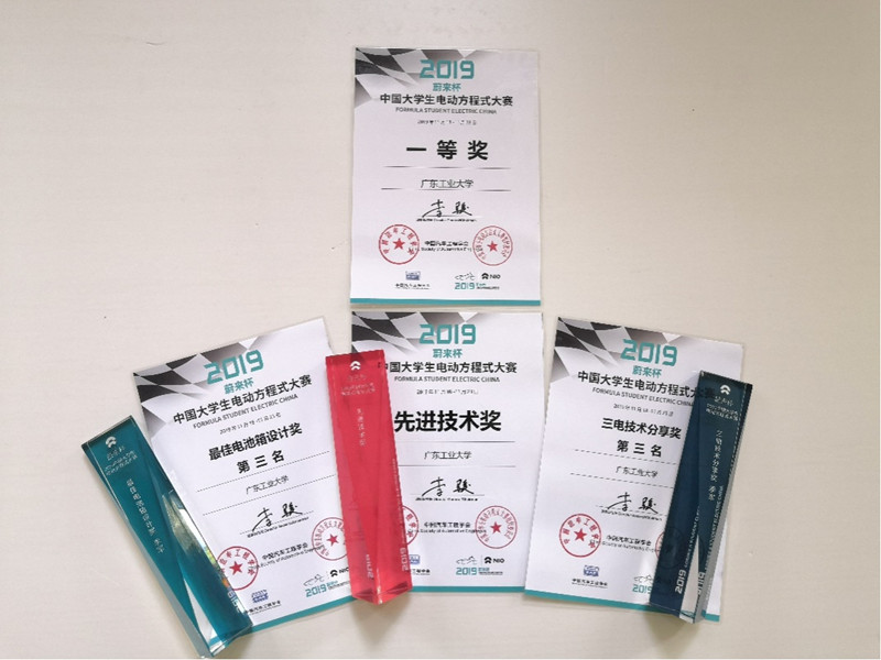 本网讯 11月18日,“蔚来杯”2019中国大学生电动方程式大赛、“爱驰杯”2019中国大学生无人驾驶方程式大赛在珠海航展中心举行。经过八个大项的紧张角逐,电车组以全国总成绩第六荣获一等奖,并同时获得先进技术奖,三电技术分享奖的季军和最佳电池箱设计奖的季军。无人车A05首次参赛获赛车设计奖季军。