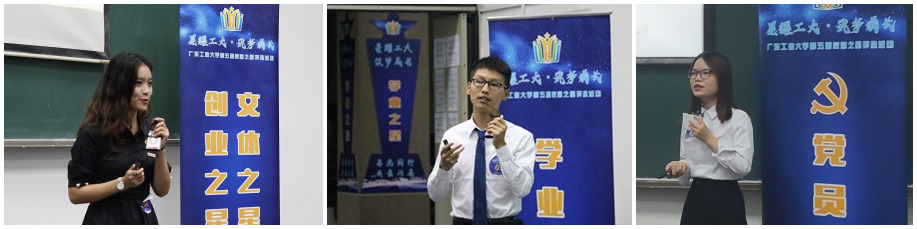 评选会现场,候选的同学结合PPT逐一介绍个人或集体所取得的成绩,分享对于榜样的理解与思考。“十佳大学生”候选的同学们既展示了全面发展、硕果累累的履历表,也分享了为梦想奋斗的幸福感与满足感;“党员之星”候选的同学们则分享了作为一名共产党员如何守初心、勇担当的成长足迹;“学业之星”候选的同学们则通过自己勤勉刻苦的经历,在学业专业领域的突出成绩诠释了“一分耕一分收获”的朴实真理;“科技创新之星”候选的同学们则用一项项通过汗水与智慧换取的高水平学科竞赛奖项与科技创新成果,为科学精神与创新精神做了最佳的代言;“创业之星”候选的同学们则介绍了他们如何将一个创业点子与生活实际相结合,如何在实干中提升自己的综合素质;“自强之星”候选的同学们则展示了他们在困难与挑战面前的自强自立,不屈不挠,用积极进取与坚韧不拔为自己打开了另一扇通往成功的大门;“实践之星”候选的同学们则分享了在实践中思考,在实践中成长,在实践中播撒爱心,传递社会正能量的故事;“文体之星”候选同学们的展示则充分说明了工科院校的学子也有着不一样的文艺范儿,也再度彰显了学校作为体育强校的夺目光彩;“十佳党支部”“十佳班集体”候选集体的代表的介绍与讲述则诠释了党支部战斗堡垒的作用与班集体团结并进的力量。十大评选项目的现场既是优秀榜样同台竞技的赛场,也是现场观摩的同学们汲取榜样精神力量的朋辈思政课堂。