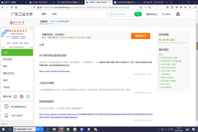 教学团队自建《工程化学》课程网站