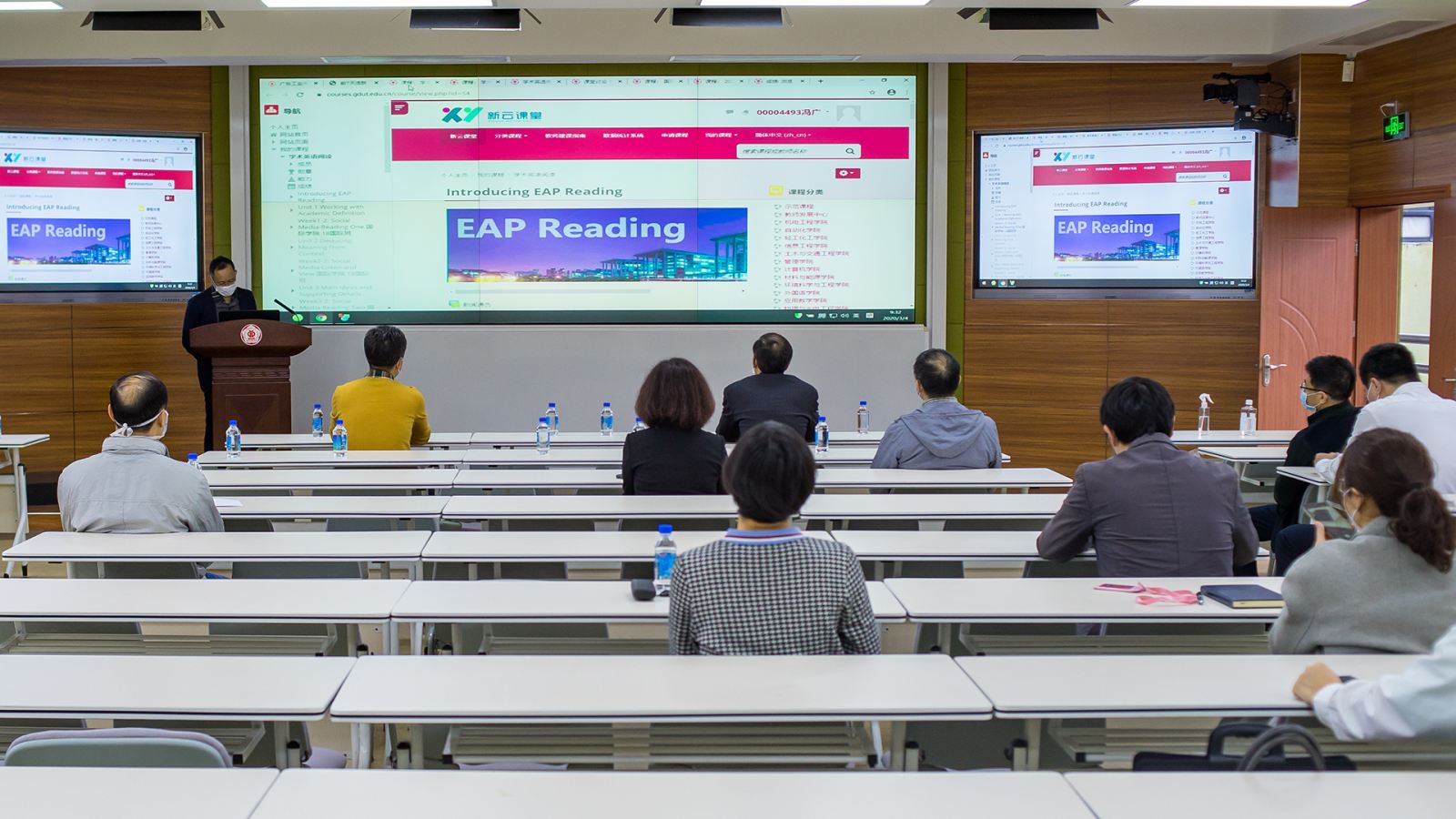 邱学青一行首先巡察了沉浸式录播课室和中心机房,详细听取了抗疫期间新云课堂的运行、教师借助新云课堂线上授课情况及学生的参与度与访问量,并现场讨论了新云课堂的运行与推广,特别是在疫情期间如何充分运用好线上教学模式,加强界面的友好性及功能的便捷性,激发老师与学生参与的兴趣。