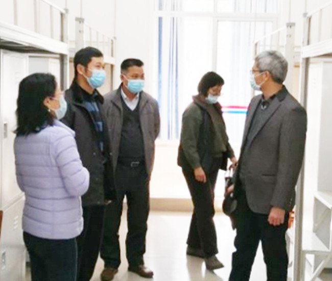 此前,2月18日下午,学校副校长陈卓武带领后勤管理处、校医院负责人到国际教育学院检査并现场指导疫情防控工作。国际教育学院负责人一同检査并汇报校区的疫情防控工作。陈卓武听取了校区的整体疫情防控工作汇报,重点检査了学生宿舍和健康观察室,强调要继续做好校区疫情安全检査和保玊、保洁工作,落实校区疫情防控工作,为教职工上班、学生返校提前做好预案和充分准备,建设健康、文明、安全的校园。