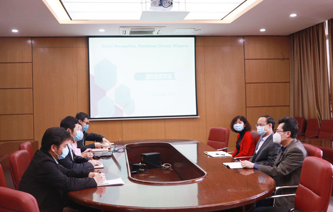 本网讯 2月25日上午,校长邱学青,副校长栾天罡和机关党委负责人一行到国际教育学院检査疫情防控工作,并调研指导国际化人才培养及学院发展建设。国际教育学院负责人参加了检查及调研座谈会。